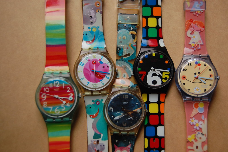 Not only that, watches joined the color-crazed 80s with the introduction of the bold and vibrant Swatch watch in 1983. Colorful, quirky, and fun, Swatch watches came in various designs, bright colors, and patterns.
